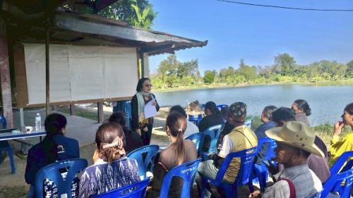 นางสาวศิริพร อ่อนละออ พัฒนาการอำเภอห้วยทับทัน พร้อมด้วยเจ้าหน้าที่พัฒนาชุมชน ดำเนินโครงการทบทวน กำหนดทิศทาง และปรับแผนพัฒนาหมู่บ้าน หมู่บ้านเศรษฐกิจพอเพียง บ้านเมืองหลวง หมู่ที่ 3 ตำบลเมืองหลวง กลุ่มเป้าหมายจำนวน 30 คน