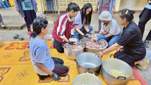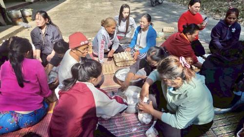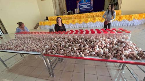 นางสาวศิริพร อ่อนละออ พัฒนาการอำเภอห้วยทับทัน พร้อมด้วยเจ้าหน้าที่พัฒนาชุมชน ดำเนินโครงการสร้างสัมมาชีพชุมชนครัวเรือนที่ได้รับผลกระทบด้านอาชีพและรายได้ที่มีศักยภาพและสามารถพัฒนาได้ กิจกรรมที่ 2 ฝึกอบรมการทำแหนมหมู แหนมกระดูกหมู และไข่เค็ม ให้กับกลุ่มเป้าหมาย จำนวน 30 คน โดยมีวัตถุประสงค์ เพื่อฝึกปฏิบัติการสาธิตอาชีพ ตามที่ครัวเรือนมีปัญหาด้านอาชีพและรายได้ต้องการฝึกปฏิบัติ
