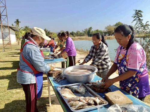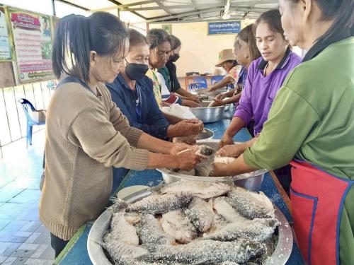 นางสาวศิริพร อ่อนละออ พัฒนาการอำเภอห้วยทับทัน พร้อมด้วยเจ้าหน้าที่พัฒนาชุมชน ดำเนินโครงการส่งเสริมประชาชนเป้าหมายเข้าถึงแหล่งทุน กิจกรรมที่ 2 ฝึกอาชีพการทำปลาส้ม ให้กับกลุ่มเป้าหมาย จำนวน 20 คน โดยมีวัตถุประสงค์ เพื่อให้ประชาชนเข้าถึงแหล่งทุนที่มีอยู่ในชุมชนสามารถสร้างอาชีพสร้างรายได้ให้เพิ่มขึ้น และพัฒนาอาชีพให้กับประชาชนที่เป็นสมาชิกของกองทุนชุมชน